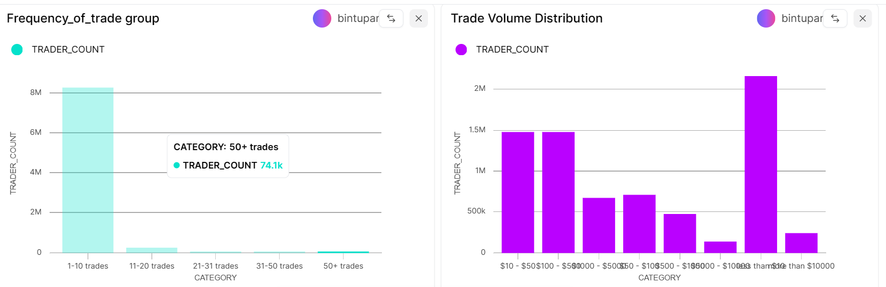 Engaging in sporadic trades below $10, potentially exploring the platform. Rewards include gamification and micro-incentives.