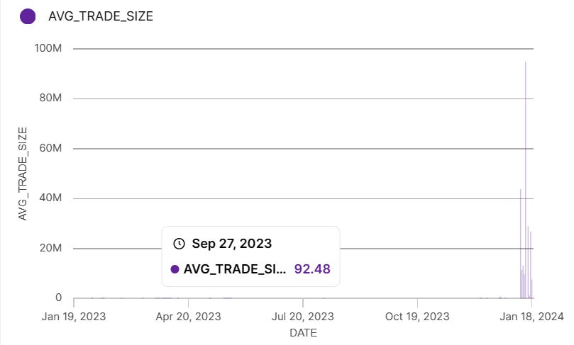 January Spikes: Delve into the cause and implications of the January spikes in average trade size and daily volume.