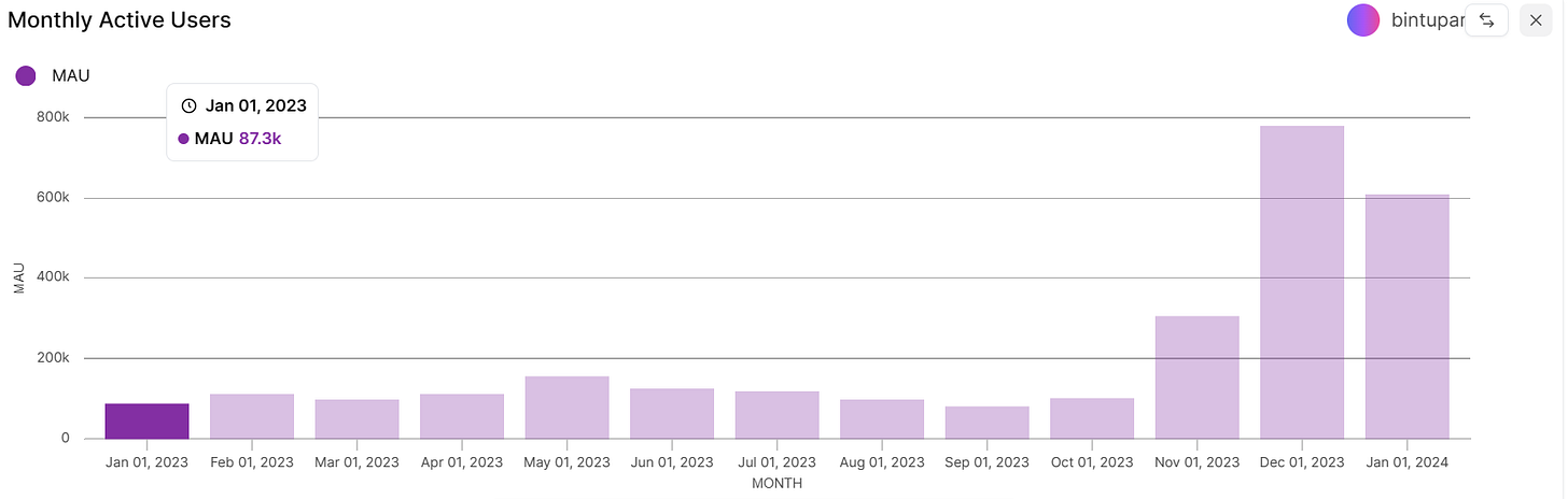 Explosive Growth: MAU surged from 95k-120k to 750k in December, a staggering 6x increase, with January maintaining strong momentum at 595k.